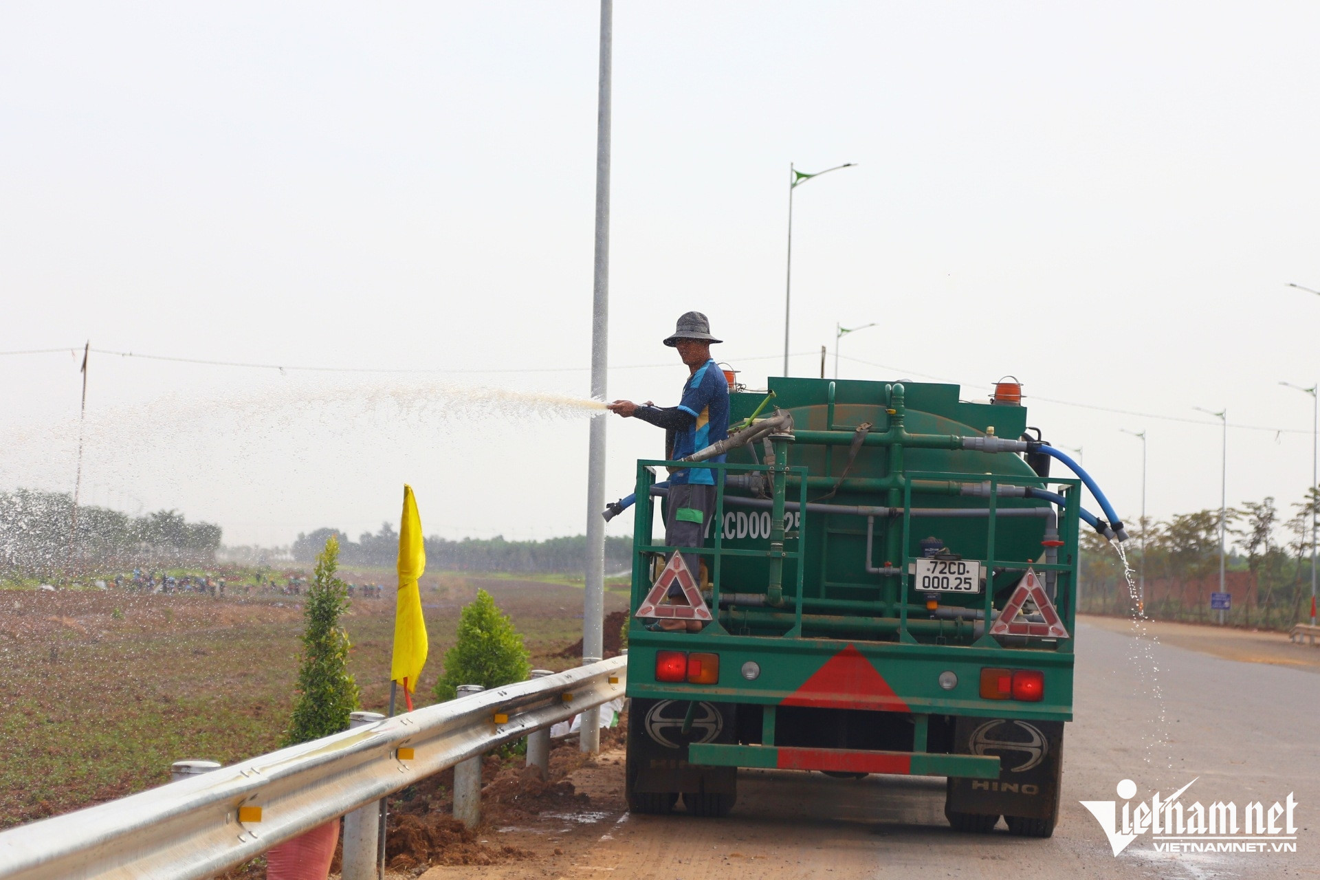 Sau khi thông xe kỹ thuật, các công nhân tiếp tục trồng cây xanh và chăm sóc mảng xanh dọc tuyến, tạo cảnh quan đẹp và thông thoáng cho trục đường dẫn vào sân bay.