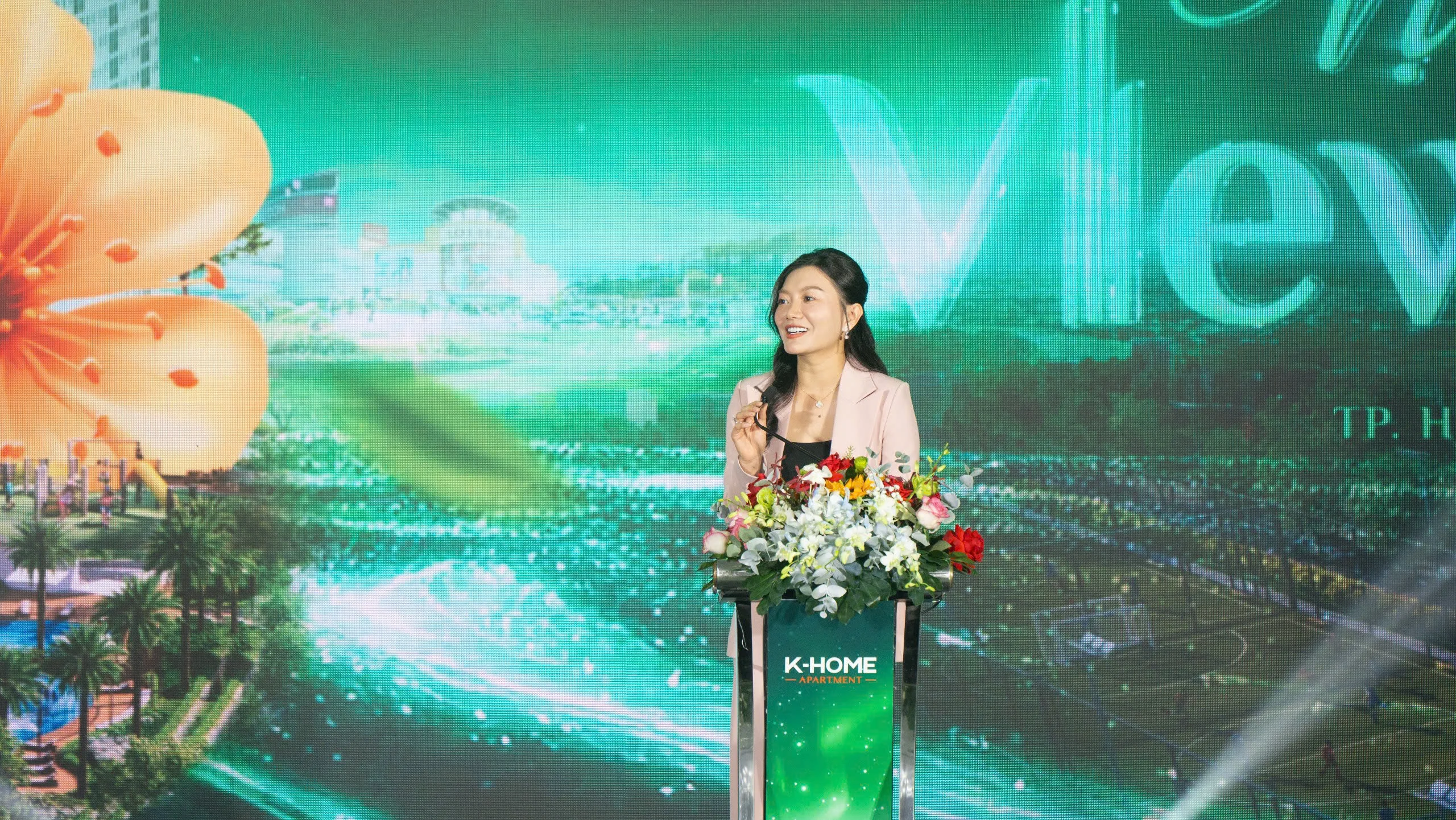 Bà Nguyễn Ngọc Ánh – Phó chủ tịch Hội đồng Quản trị Kim Oanh Group, kiêm Phó tổng giám đốc Kim Oanh Land – phát biểu khai mạc chương trình và chia sẻ với khách hàng về tâm huyết phát triển dự án K-Home New City nói chung, khu căn hộ K-Home Apartment nói riêng.