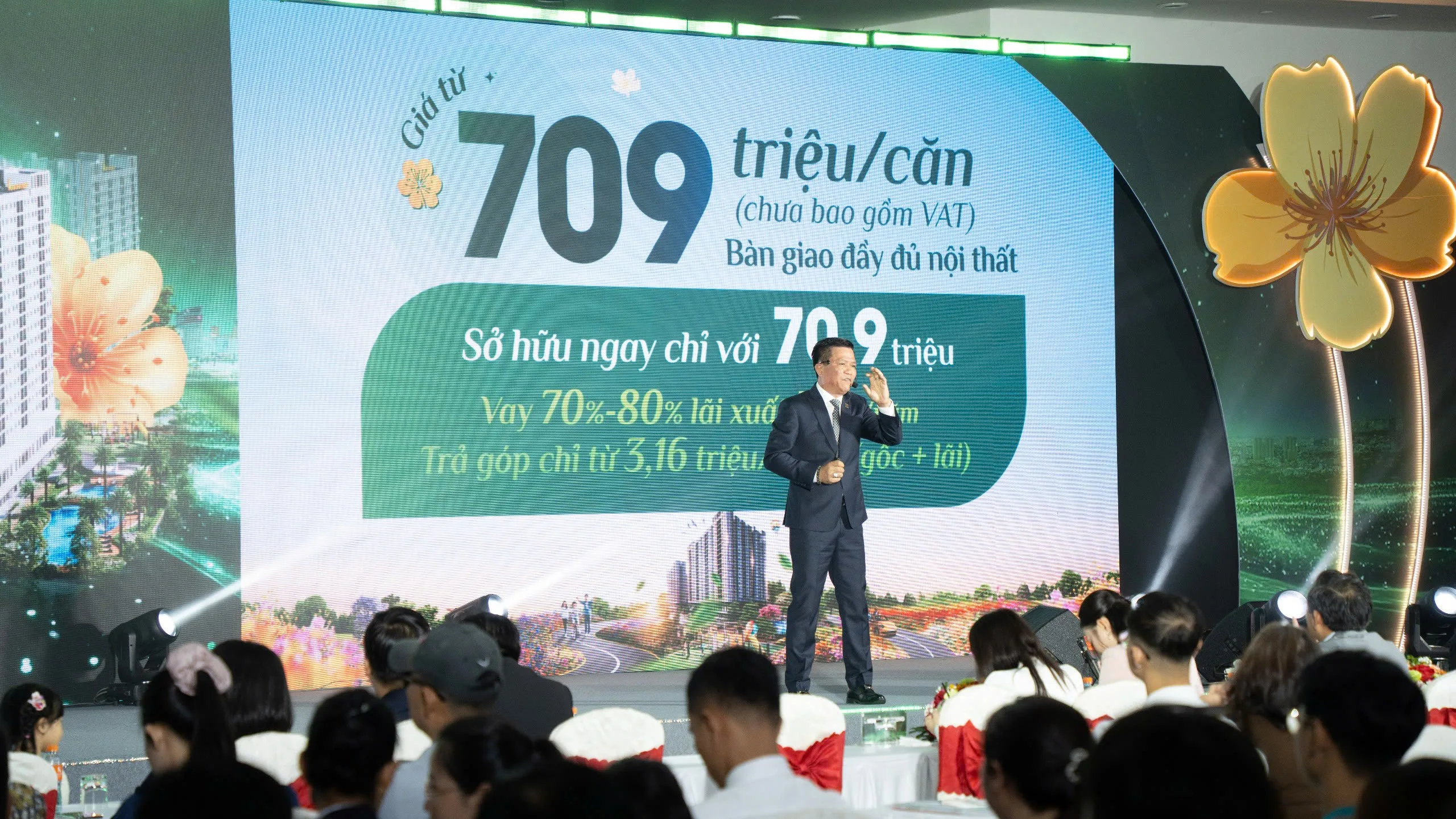 Ông Tô Duy Chinh – Giám đốc Khối Kinh doanh Kim Oanh Group – trong khoảnh khắc công bố chính sách ưu đãi dành cho khách hàng của K-Home Apartment